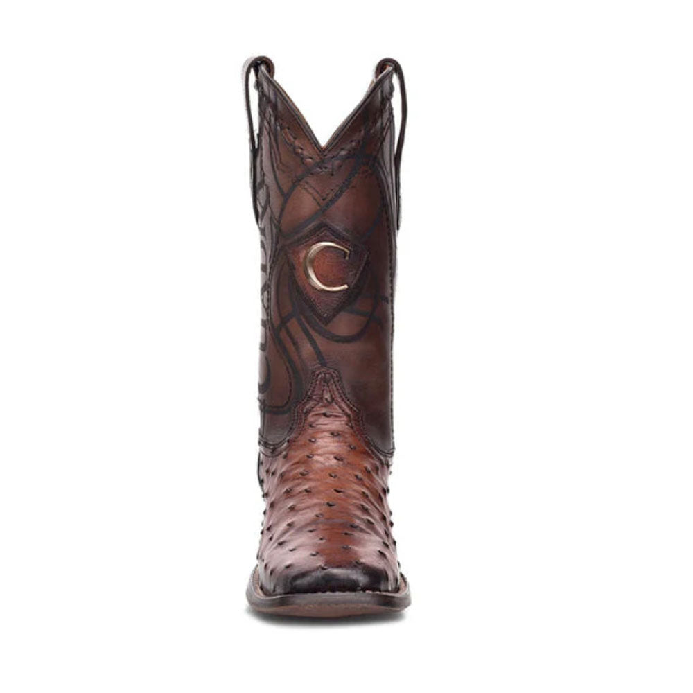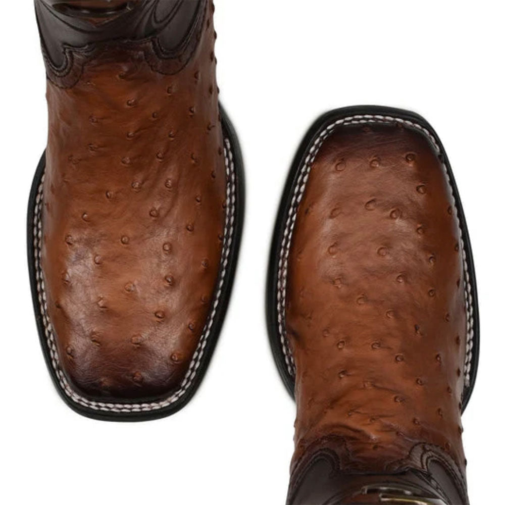 Un símbolo de estilo y calidad, diseñada para los amantes de la moda vaquera que buscan confort y elegancia en su calzado. Estas botas están fabricadas con piel de avestruz genuina en un tono café sofisticado, lo que les confiere un aspecto distintivo y una textura única.