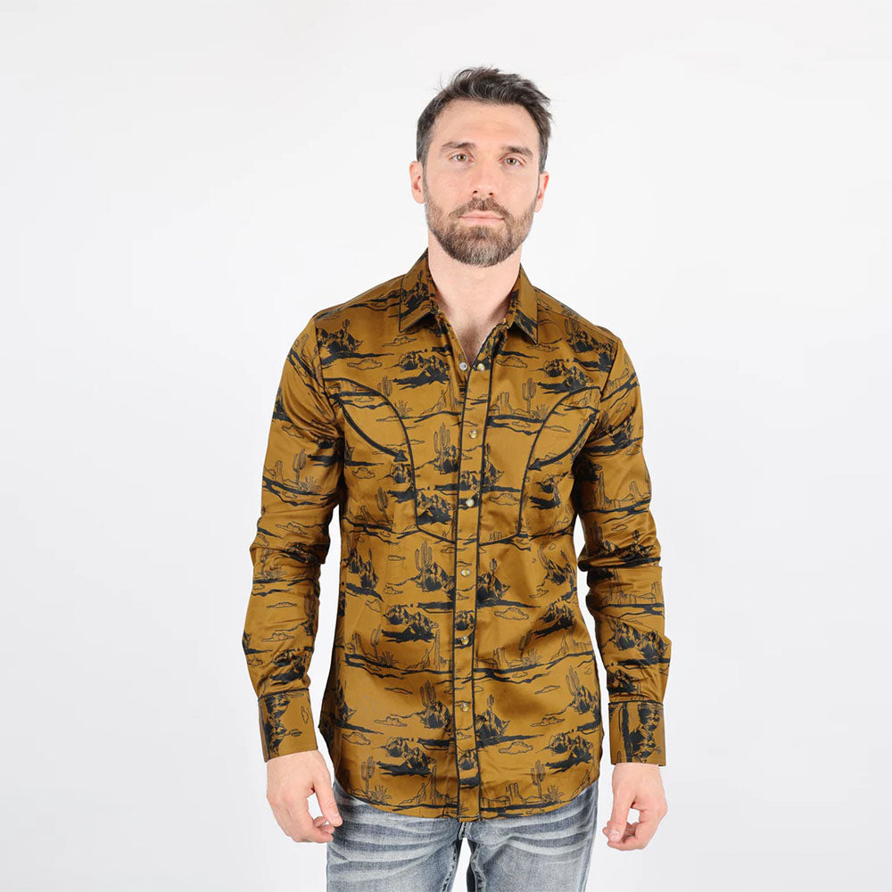 Presentamos nuestra camisa de corte moderno para hombre con estampado de monograma de cactus y ribetes elásticos de algodón, una incorporación elegante a su guardarropa. Confeccionada con algodón de primera calidad con elasticidad adicional, esta camisa garantiza comodidad y estilo. La característica más destacada es el llamativo estampado monograma de cactus con sutiles detalles de ribetes, que ofrecen un aspecto único y contemporáneo.