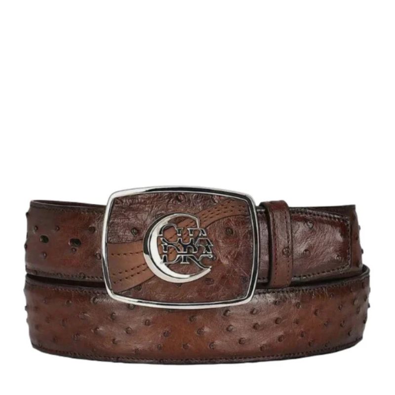 El Cinturón Cuadra Avestruz Café BC307 es una pieza de lujo con alma vaquera. Elaborado artesanalmente en piel genuina de avestruz, presume una textura única, suave y resistente, que refleja elegancia, tradición y carácter.