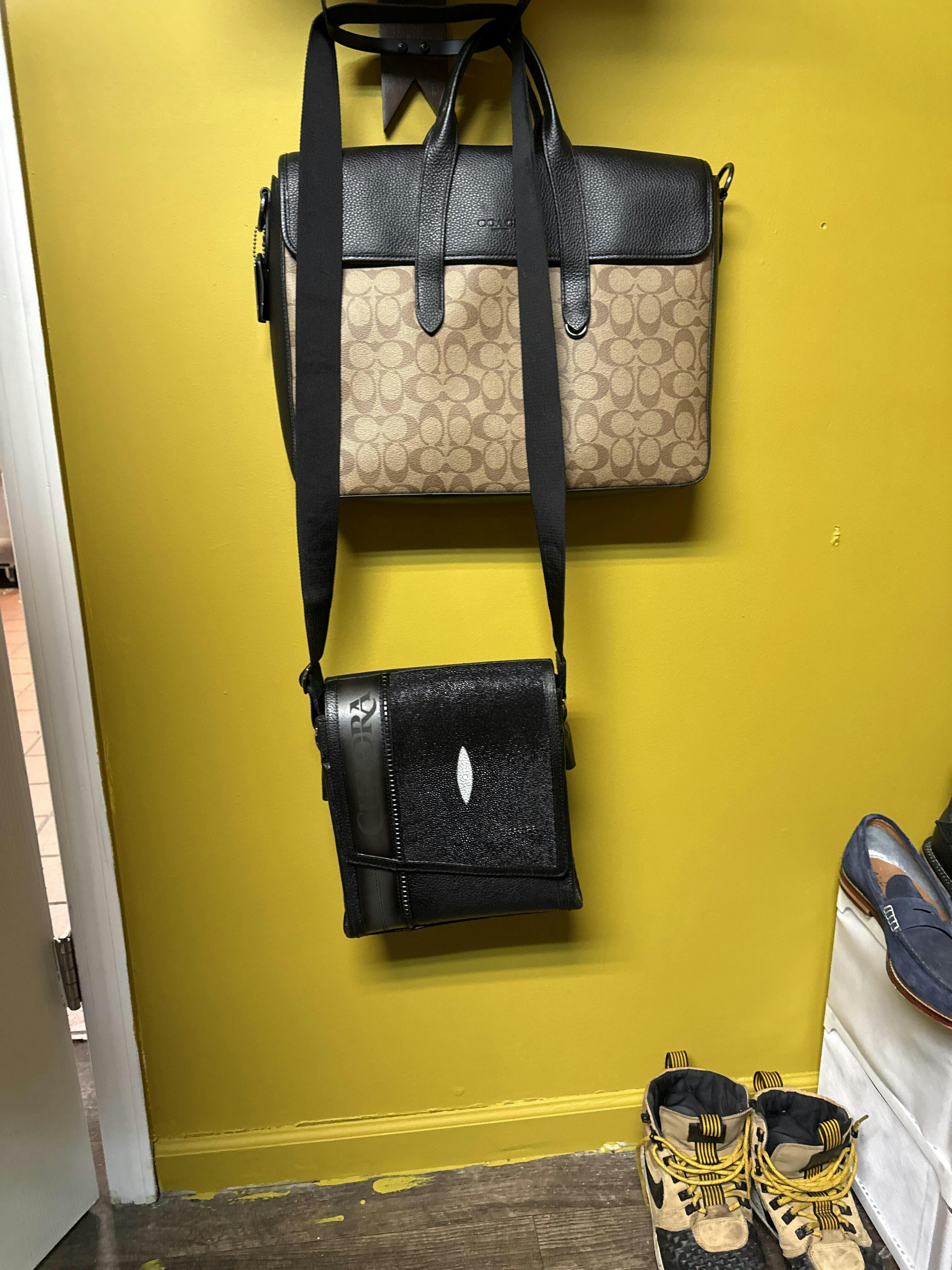 El bolso de hombro de piel exótica negra, un accesorio elegante y funcional. Diseñado exclusivamente para hombres que aprecian la combinación perfecta de lujo y practicidad. Artesanos expertos elaboran cuidadosamente este excepcional bolso con auténtica piel de raya y bovino, creando un contraste cautivador que irradia opulencia.