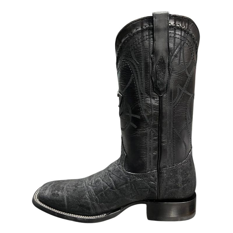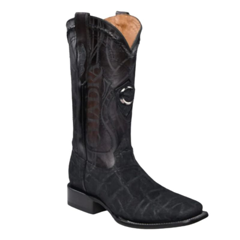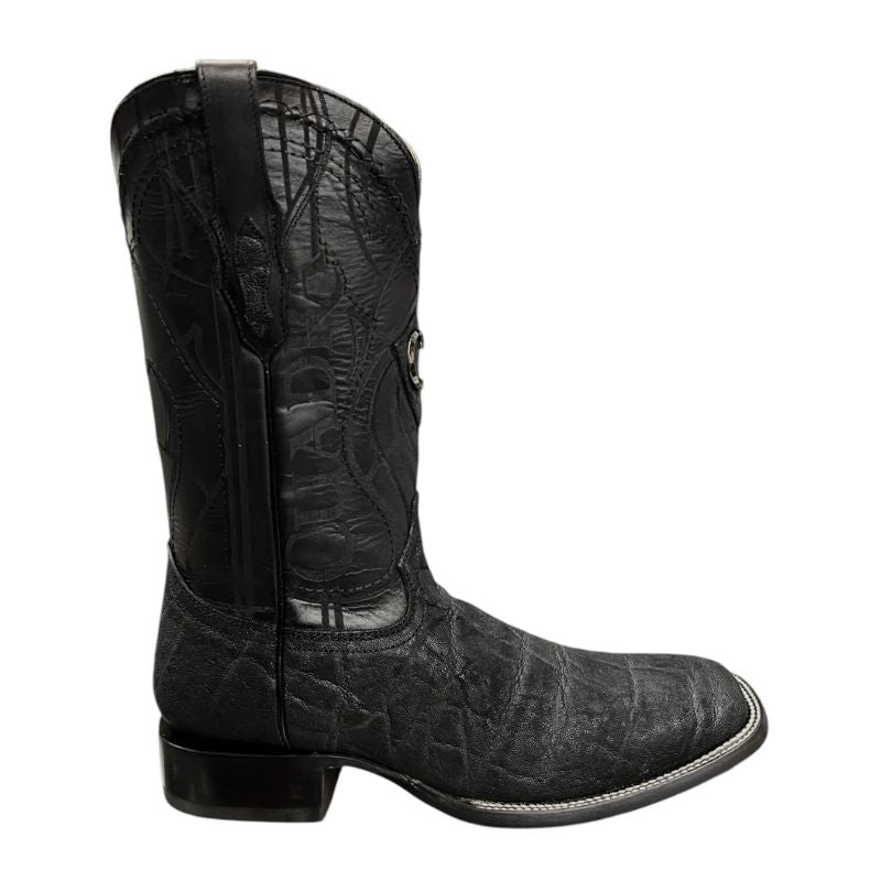Elaboradas con auténtica piel de elefante y un elegante acabado negro, estas botas son una auténtica pieza de diseño. Su lujosa textura y su impecable artesanía se reflejan en cada detalle, desde las precisas costuras hasta los intrincados bordados, lo que demuestra la dedicación de Cuadra a la calidad y la meticulosa atención al detalle.