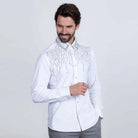 Camisa Barabas de manga larga en blanco elegante, adornada con piedras plateadas que añaden un toque sofisticado y brillante. Perfecta para ocasiones especiales o para elevar tu estilo cotidiano, esta prenda combina comodidad con un diseño llamativo. Las piedras plateadas estratégicamente colocadas crean un efecto deslumbrante que destaca sin ser excesivo. Ideal para hombres que buscan expresar su personalidad a través de prendas únicas y de calidad.