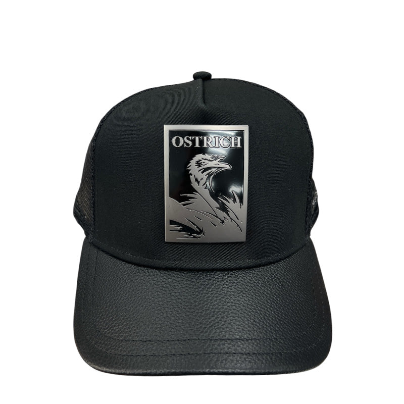 Gorra Cuadra Parche de Avestruz Negra CC116
