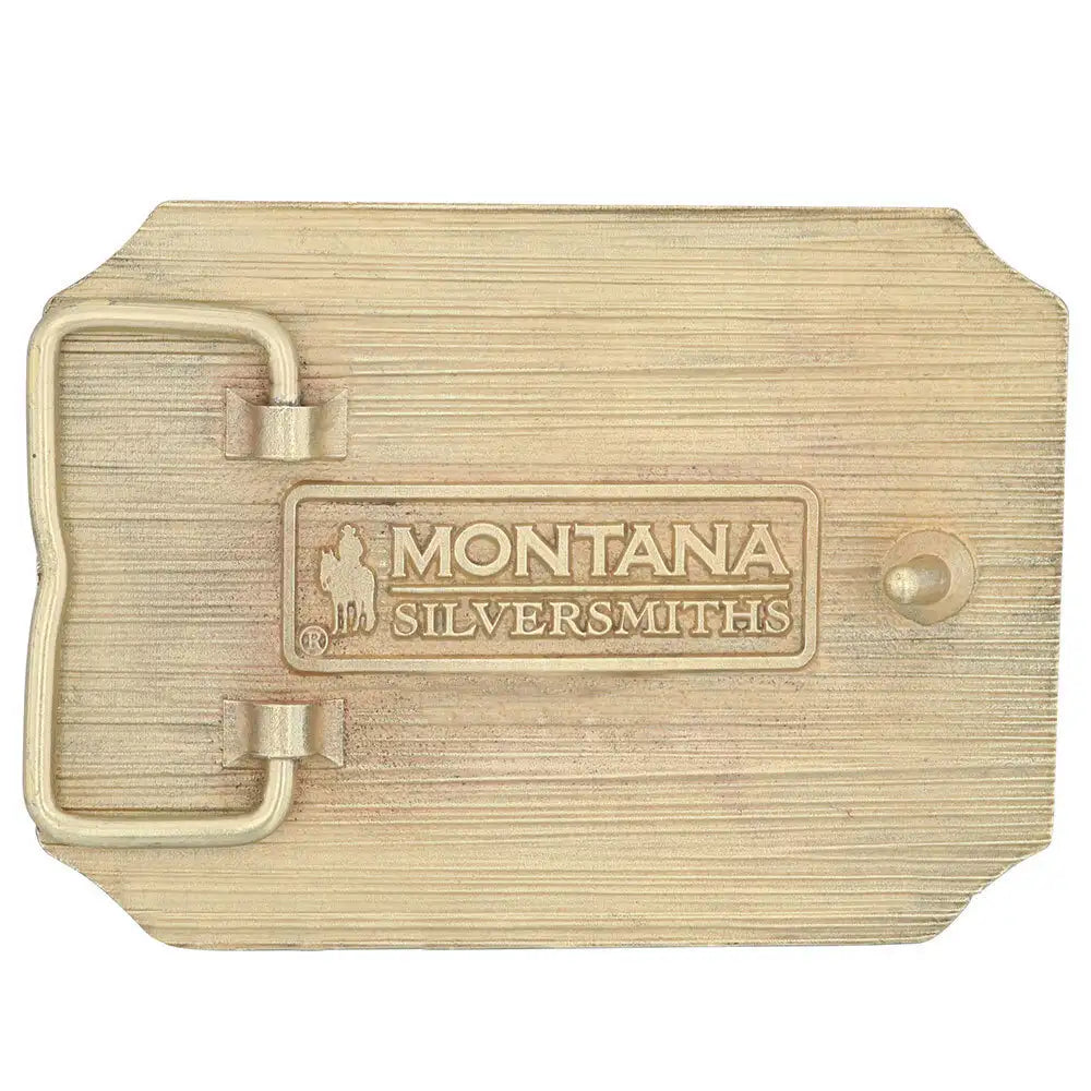 La hebilla de cinturón Patriot Christian Cowboy Attitude es una hebilla de fundición rectangular con esquinas recortadas en un acabado de bronce. Tiene la escena de una bandera estadounidense que cubre la totalidad del cinturón. En el centro, se coloca un vaquero cristiano patriota arrodillado ante la cruz. Detrás de ese vaquero, su caballo lo espera pacientemente. Tiene un borde liso de perfil bajo alrededor.