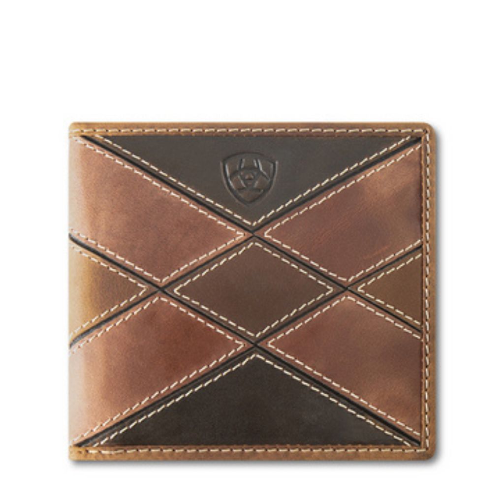 Esta billetera plegable grande Ariat de M&F Western Products está hecha de cuero genuino. Piel roja, canela y marrón con un diseño patchwork y el escudo de Ariat grabado. Múltiples ranuras para tarjetas, compartimento para efectivo y ventana para DNI en el interior.