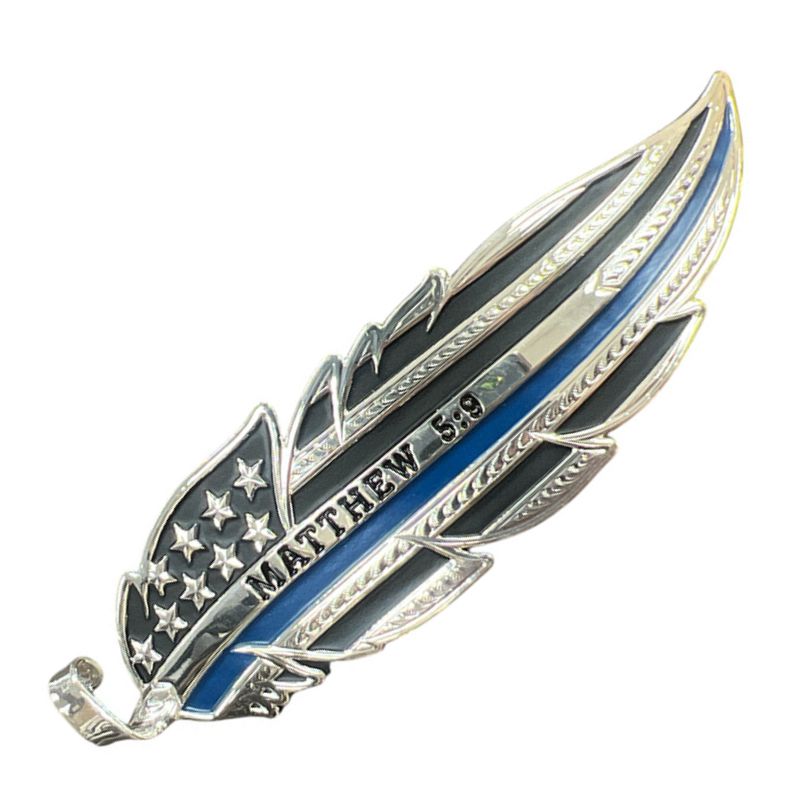 un accesorio exclusivo diseñado para realzar el estilo y la elegancia de cualquier sombrero texano. Inspirada en el versículo bíblico "Bienaventurados los pacificadores, porque ellos serán llamados hijos de Dios", esta pluma combina significado espiritual con un diseño refinado.