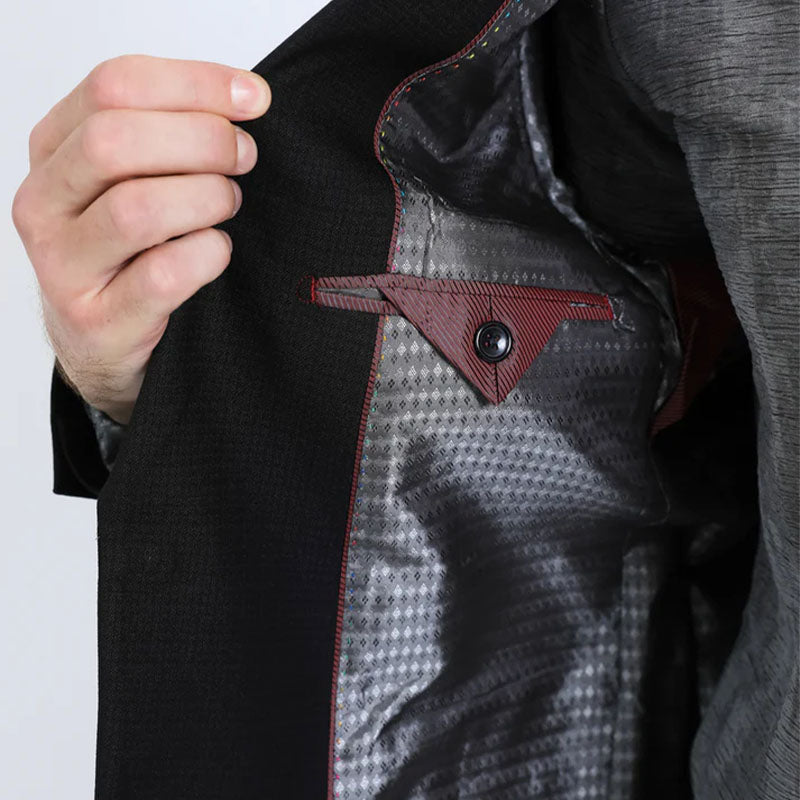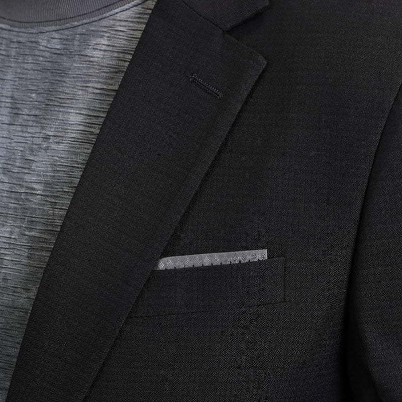 - Forro interno con el mismo diseño que el pañuelo de bolsillo falso para una apariencia cohesiva.