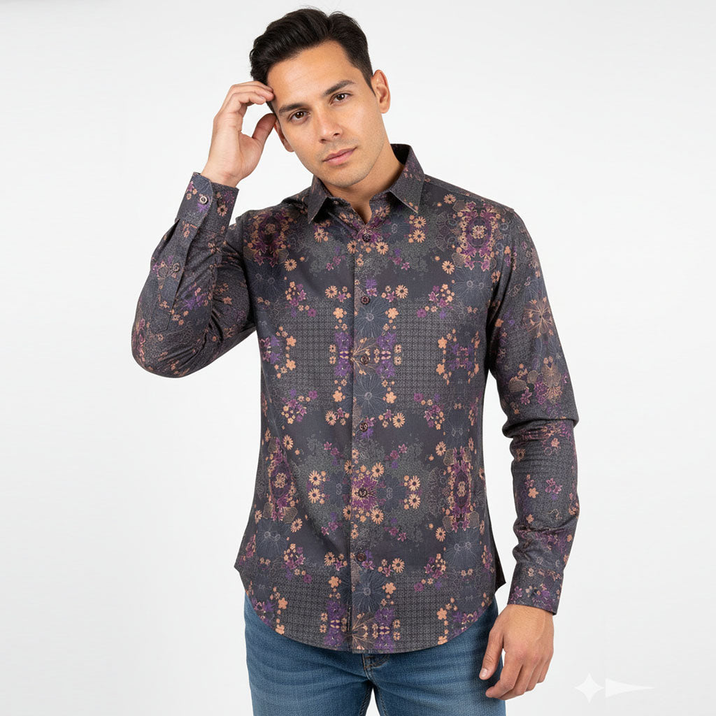 Domina la noche con esta camisa negra audaz que desafía lo convencional. El detalle de la flor morada añade un toque de misterio y sofisticación, transformando un básico en una declaración de estilo. Perfecta para quien se atreve a destacar sin gritar, esta prenda combina elegancia oscura con un acento inesperado que captura todas las miradas. Versátil y atrevida, es el aliado perfecto para noches memorables y momentos que exigen presencia.