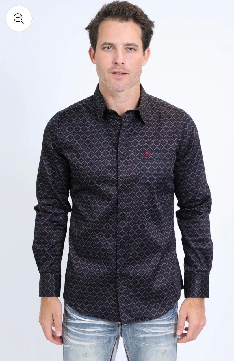 CWL10390 CAMISA NEGRA DE CORTE MODERNO