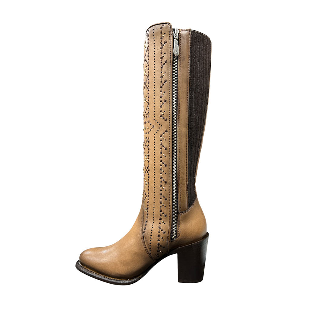 Bota Cuadra Almendra Elastica y Bordada CC258