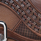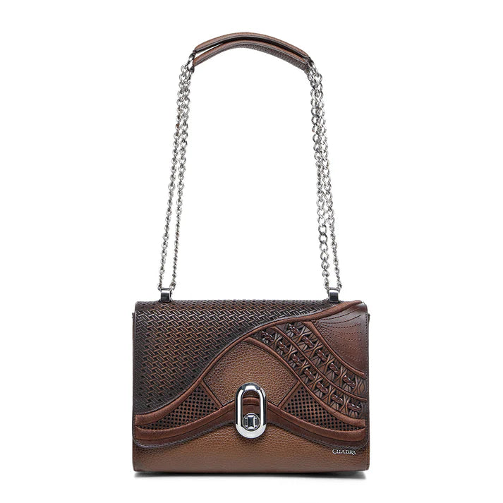 El bolso de piel de vaca color miel de Cuadra combina detalles láser, paneles tejidos y una cremallera suave para un look cálido y elegante para el día a día. Ligero y fácil de combinar a diario.