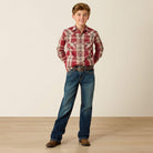Toda estrella de rodeo en ciernes necesita una camisa clásica con broches. Esta combina el icónico estilo del Oeste con un estampado tradicional a cuadros que querrán usar desde la escuela hasta el establo y a todas partes.