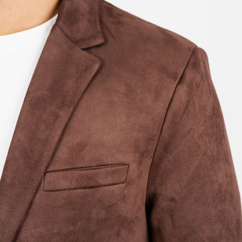 Realza tu estilo al instante con este sofisticado blazer de dos botones. Esta chaqueta, confeccionada en gamuza sintética de lujo, tiene una silueta elegante que favorece tu figura. El corte ajustado crea un look moderno y refinado, perfecto para salir por la noche o para un día informal elegante.