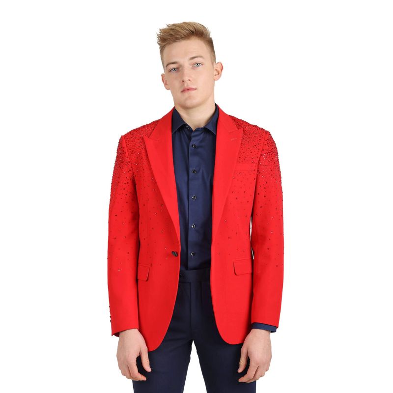 - Saco para hombre con solapa con muesca, color liso y diamantes con diamantes de imitación
