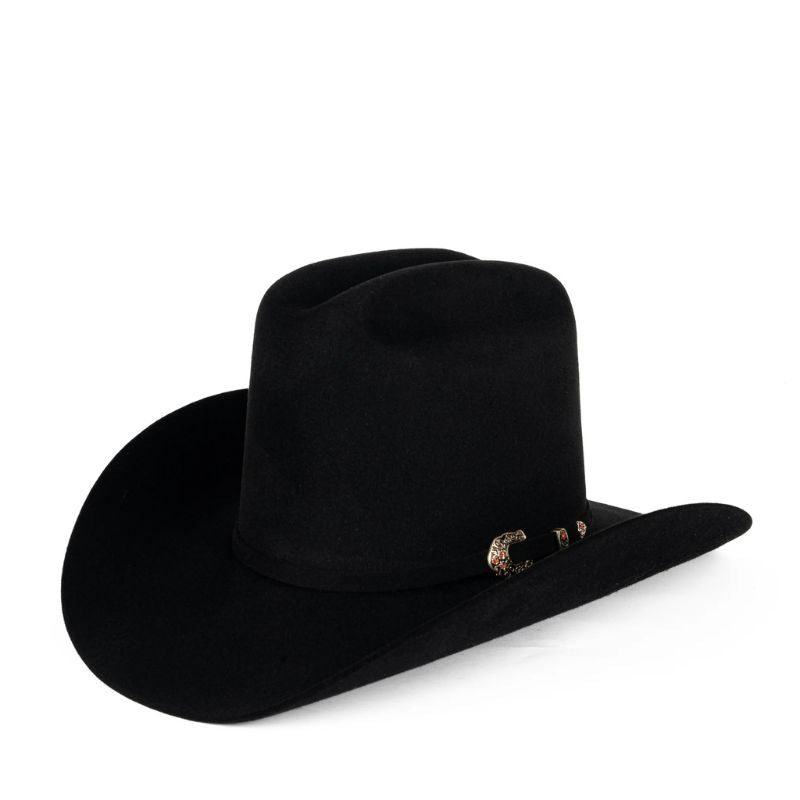 Es el símbolo perfecto de elegancia y tradición western. Confeccionada en material de alta calidad y con un acabado negro profundo, esta texana de 50X ofrece una estructura resistente y un ajuste cómodo.
