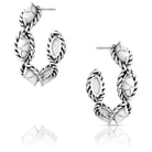 Realza tu estilo con los pendientes Broken Halo. Estos pendientes presentan una hilera vertical de piedras de búfalo blancas en forma de almendra. Las piedras están rodeadas por un diseño de cuerda plateada que se entrelaza alrededor de las piedras creando el diseño de aro. Estos pendientes tienen alambres hipoalergénicos en la parte posterior. El color de las piedras puede variar.